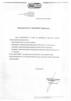 Awbud Sp. z o.o.Zadania przy budowie salonu Opel w Sosnowcu Środuli, modernizacja hal produkcyjnych Unilevel S.A., wykonanie i montaż konstrukcji nośnej dachu pływalni przy szkole podstawowej nr 3 w Zawierciu |