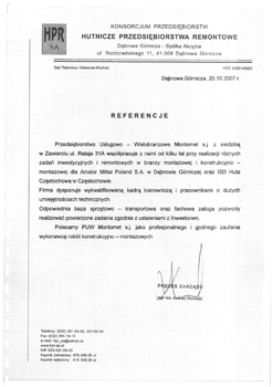 Hutnicze Przedsiębiorstwa Remontowe Dąbrowa GórniczaRealizacja zadań inwestycyjnych i remontowych dla Arcelor Mittal Poland S.A. |
