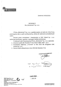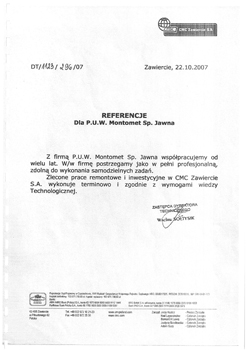 CMC Poland Sp. z o.o.Wykonanie zraszacza spalin dla wydziału P-33, przesiewacza bębnowego Trommel dla Strzępiarki,wykonanie pancerza kadzi odlewniczej dla wydziału P-33 |